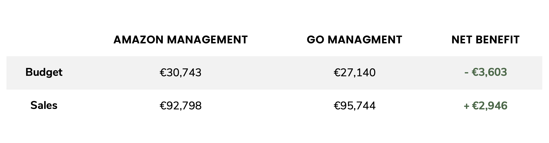After just 2 weeks of managing the brand’s ads, we were able to drive more sales with less spend compared to the previous month with Amazon management: