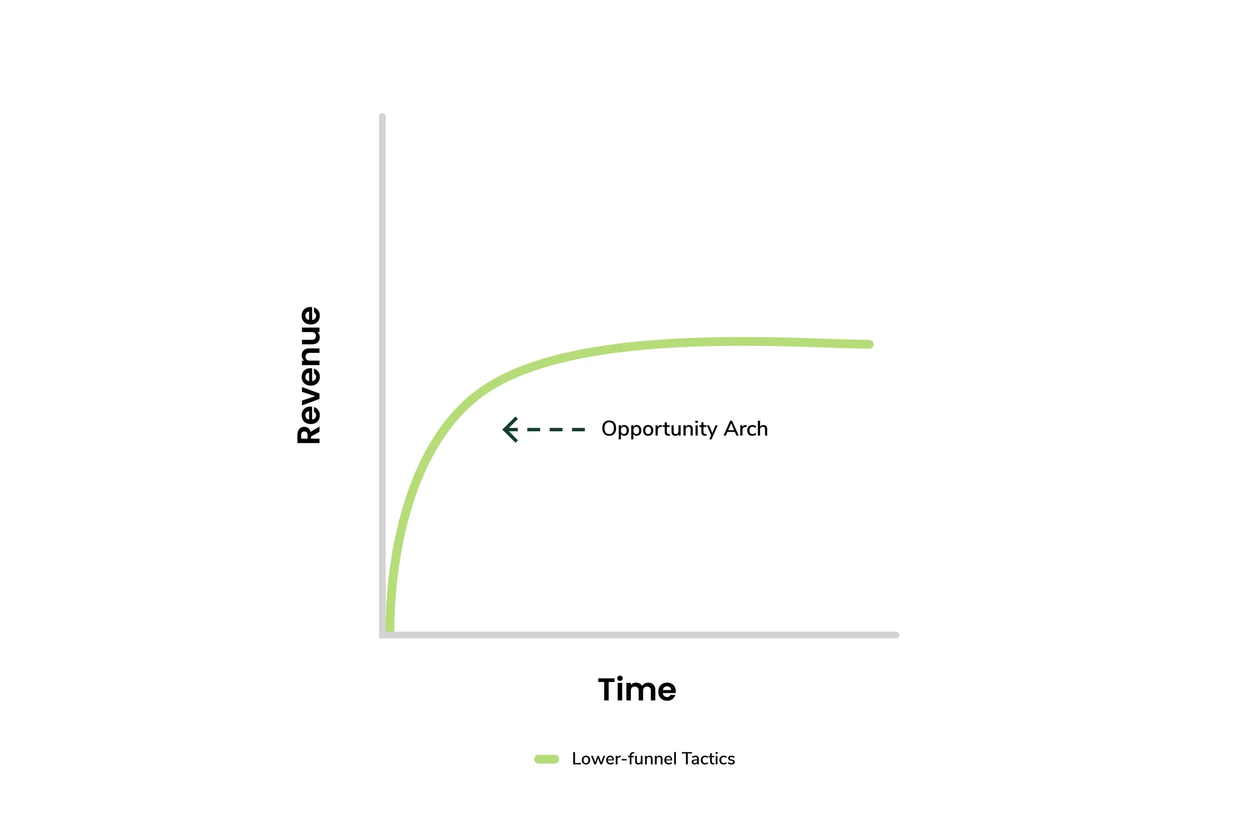 The revenue growth on upper-funnel tactics looks different than lower-funnel. There is a more delayed opportunity arch and the direct revenue from those tactics most likely won’t see the same size of return. However, upper-funnel tactics are designed to drive holistic growth.