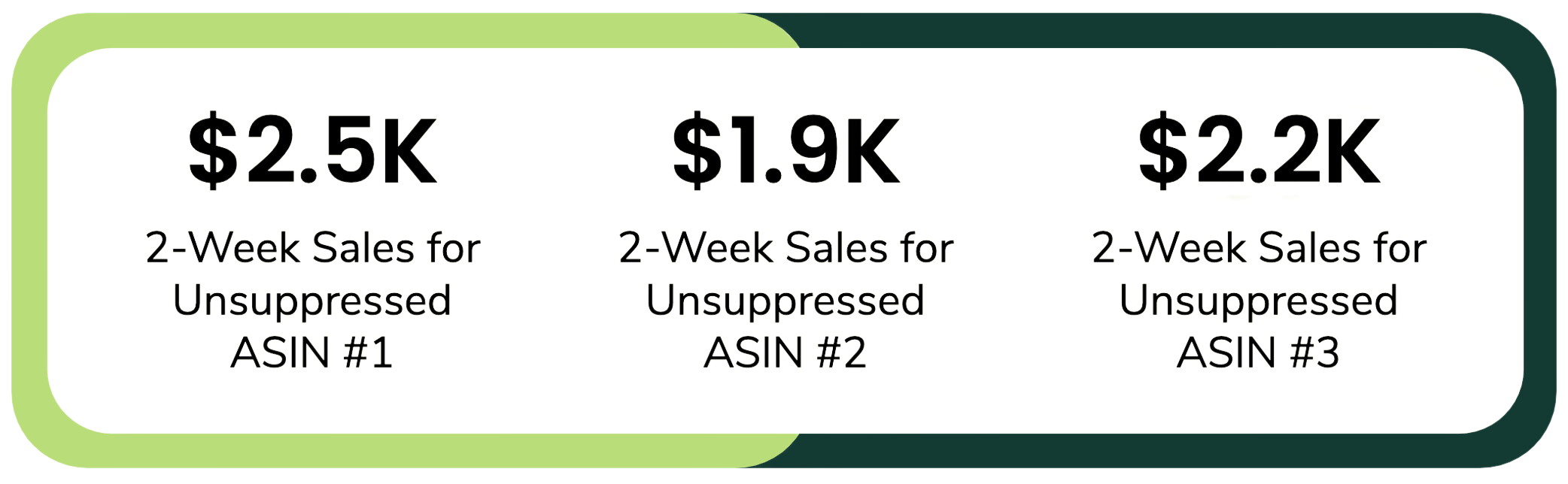 Through our team’s persistence, dedication, willingness to try different tactics, and communication with Amazon contacts, we were able to get these three high-performing items unsuppressed in less than one month.